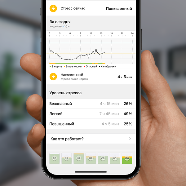Наш герой также поделился, что следит за уровнем стресса, отмечая его повышения и понижения. Ещё он подмечает накопленный стресс и старается корректировать свои ежедневные действия: «Я стал значительно спокойнее и выдержаннее и, в первую очередь, это произошло благодаря браслету».