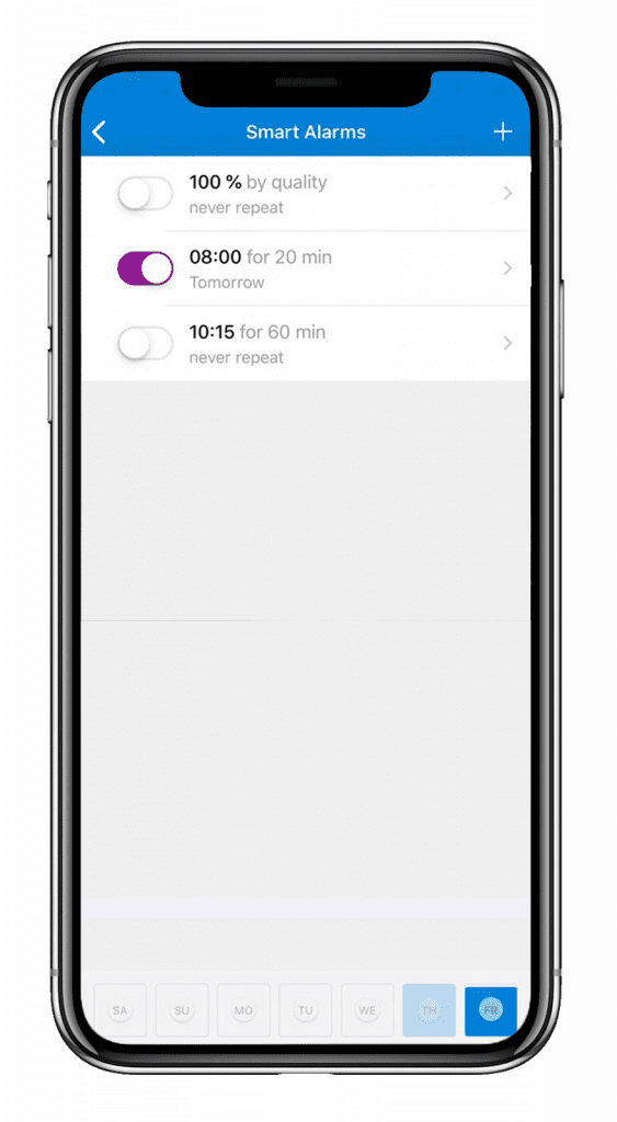 Функция “умный будильник” позволяет разбудить вас в нужное время. Например, если вы установите будильник на 6-7 утра, то с 6-ти часов GoBe начнет мониторинг состояния фазы быстрого сна (REM). Чтобы обеспечить максимально комфортное пробуждение – умный браслет разбудит вас мягкими вибрациями как раз в конце быстрой фазы. Однако, если в обозначенный период браслет не зафиксирует быстрый сон, вы проснетесь в конце указанного времени.