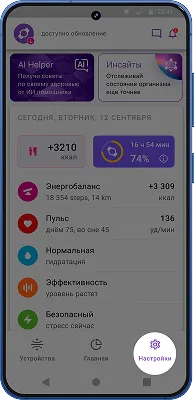 Вы можете подключить сторонние источники данных к экосистеме HEALBE, чтобы быстрее вносить данные о весе или увидеть более полную картину своего образа жизни. Для этого нужно подключить приём или отправку данных из Apple Health (для iOS-устройств) и Health Connect (для Android-устройств). Так приложение HEALBE сможет дополнять собственные измерения сторонними данными и наоборот.
