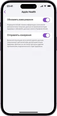 Важно учитывать, что мы не контролируем обработку информации в сторонних экосистемах, и потому не можем гарантировать итоговую целостность представления информации, полученной с GoBe. Включить опции получения и отправки данных можно в разделе Настроек приложения: