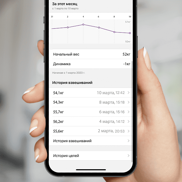 Желательно взвешиваться через равные промежутки времени — раз в сутки, раз в три дня и так далее. Так будет легче смотреть динамику изменения веса, которая лучше видна за неделю или за месяц.