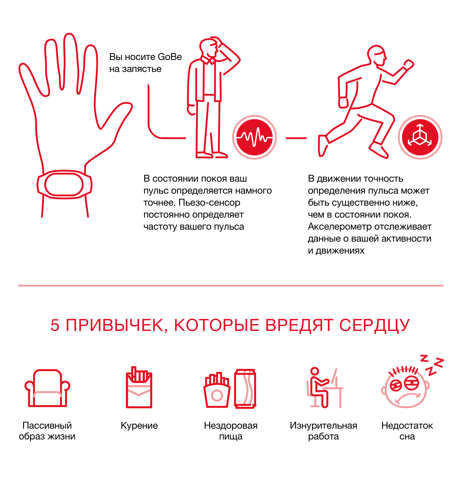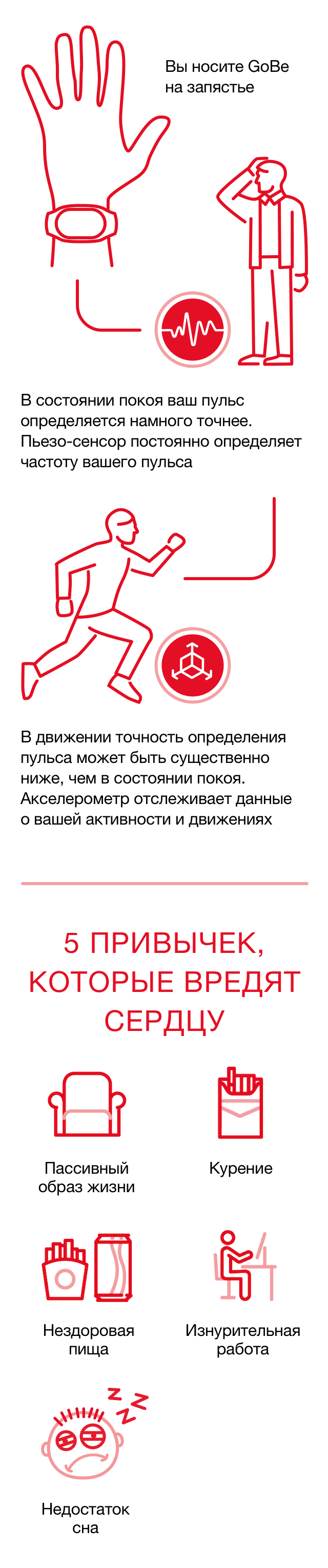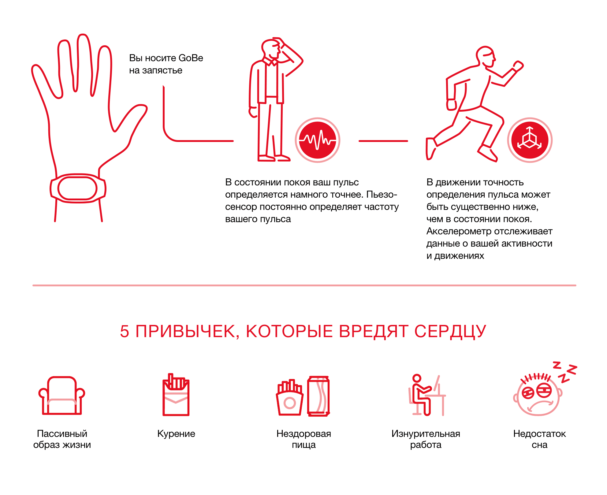 HEALBE GoBe следит за ритмом вашего сердца 24/7. «Умный» браслет поможет вам контролировать работу сердца и вовремя принимать решения, направленные на укрепление здоровья.