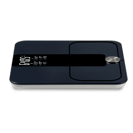- На экране весов: ключевые показатели (вес и базовые метрики состава тела)